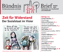 Das Bündnis für Menschenwürde und Arbeit informiert regelmäßig mit seinem Bündnisbrief über Themen rund um das Thema Menschenwürde und Arbeit. Hier geht es zum Bündnisbrief...