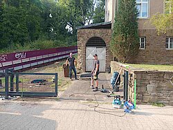 Begehbare Kunst und ein Container zum Lagern. Das Arbeitslosenzentrum ist eine Sorge los – dank der Hilfe mehrerer Menschen. Er bietet viel Platz für Gartengeräte, Werkzeuge, Bierzelt-Garnitur etc.. Mittlerweile ist der wuchtige Stahlcontainer aufgestellt, steht auf sicheren Füßen, wenn man so will. mehr...