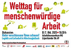Hinter verschlossene Türen schauen – und handeln. Zum „Welttag der menschlichen Arbeit“ prangern verschiedene Organisationen erneut die Missstände in der boomenden Logistikbranche an / Öffentliche Veranstaltung im Arbeitslosenzentrum. mehr...