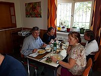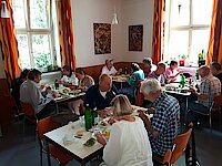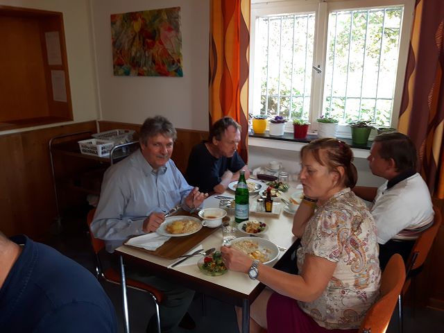 Karl Sasserath, Leiter des Arbeitslosenzentrums, stand der Gruppe als Gesprächspartner zur Verfügung und informierte seine Gäste unter anderem über die Konzeption des Arbeitslosenzentrums, die soziale Lage am Niederrhein und im Ruhrgebiet, und beantwortete die Fragen der Besucher. Die wiederum sparten dabei nicht mit Lob an der Arbeit der Mitarbeiter des ALZ. Nach dem informativen Teil ging es zum gemeinsamen Mittagsessen beim Mittagstisch im ALZ. Auch hiervon zeigten sich die Gäste begeistert. Mit einem herzlichen Dankeschön und vielfältigen Eindrücken verabschiedeten sich die Gäste.
