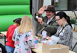 Unsere Buttonmaschinen erfreuten sich größter Zustimmung. Da war richtig was los. Auch unsere Bücherkiste mit fast 100 Kinderbüchern, die wir Dank unserer Spender*innen kostenlos abgeben konnten, war der Renner. Ebenso wie unsere Riesenseifenblasenmaschine. Team, Vorstand und ehrenamtliche Vereinsmitglieder sind wieder im Einsatz für die Eine Stadt für alle.