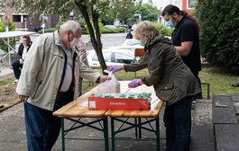 Praktisch sieht's im Moment so aus: Ella Heiniz und ihre Helferinnen Marina Nemtseva sowie Anongnut Rombey brutzeln, kochen, putzen oder schnippeln Suppen, Menü und Nachtisch wie eh und je. Das Ganze wird aber u.a. in Styropor-Behälter verpackt und warm am ALZ-Haupteingang ausgegeben. Mit Abstand und Mundschutz. Sasserath lobt hier auch Irene Fischer, Justine Krause, Georg Beer und Julian Strzalla aus dem ALZ-Team. Denn sie haben auch an Wochenenden Essen verteilt.
