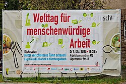 In Mönchengladbach, so die Podiumsteilnehmer, begegnet man täglich der Verletzung der Menschenwürde bei der Arbeit. Ganze Familien ziehen als moderne Wanderarbeiter von Logistikzentrum zu Logistikzentrum – über Spanien, Italien nach Deutschland.