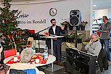 Die Villa, ein modern-zweckdienlicher Rundbau, war für die Veranstaltung üppig geschmückt, die Besucher*innen saßen an weihnachtlich dekorierten Tischen mit Gebäck und Getränken. Als der bekannte Kirchenmusiker Udo Witt am Klavier zum Mitsingen von Weihnachtsliedern einlud, spätestens da kam Stimmung auf. Manchem wurde bei „Stille Nacht, heilige Nacht“ oder Klassikern wie „Oh, Tannenbaum“ warm ums Herz.