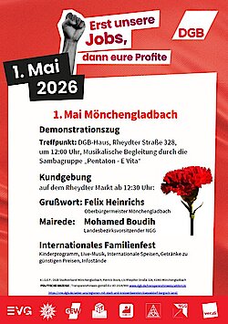 Demonstrationszug Treffpunkt: DGB-Haus, Rheydter Straße 328, um 12:00 Uhr,