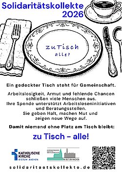Zu Tisch – alle?! ist das Thema der diesjährigen Jahresaktion des Koordinationskreises kirchlicher Arbeitsloseninitiativen sowie der Solidaritätskollekte im Bistum Aachen.