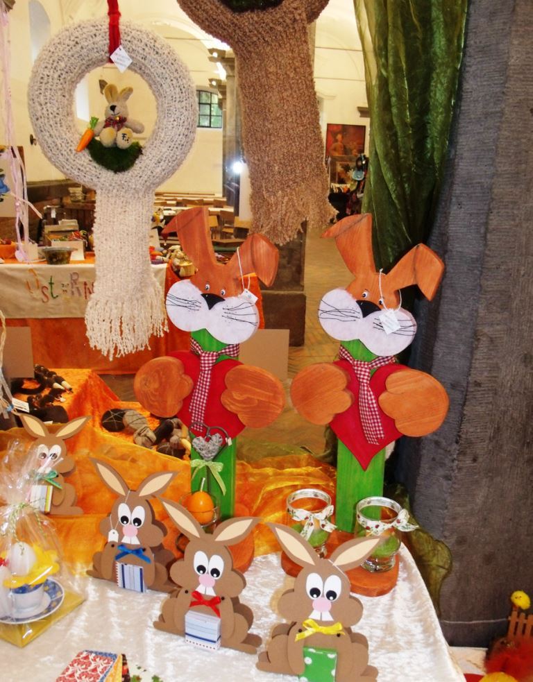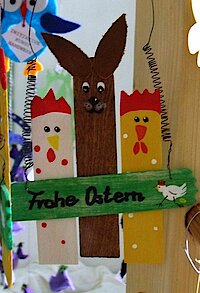 Längst sind die SchülerInnen in Studium bzw. Beruf. Doch ein harter Elternkern blieb und kreiert und bastelt weiter. Männer sind bei den allwöchentlichen "Bastelstunden" kaum anzutreffen. Winkens: "Wenn wir Holz benötigen, dann schneiden sie es für uns zurecht." Unterstützung gibt es aber auch beim Transport und Aufbau der Ausstellungen. Das war dann auch schon der Part des "starken Geschlechts". Regelmäßiger Werkstatttreff ist bei Petra Franken, doch auch der Keller von Ingrid Winkens ist eine wahre Bastelstube mit allem, was man für jetzt aktuelle Osterartikel benötigt. Bereits Anfang Januar sammeln die Frauen der Initiative Ideen für die Oster- und Frühlingsartikel. Ab Mai drehen sich ihre Gedanken dann um oft ausgefallen-originelle Deko-Sachen für Herbst und Winter. Augenfällig sind die detail-verliebt gefertigten Sachen - selbst der Osterhase zum Aufstellen kommt nahezu perfekt daher.