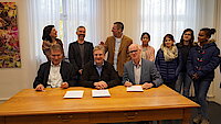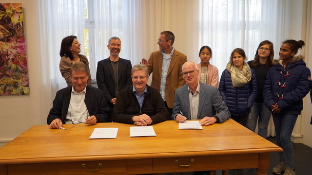 Bei der Auftragsunterzeichnung am 13. November unterstrichen Thomas Hollkott, Direktor des Stiftischen Humanistischen Gymnasiums und Karl Sasserath, Leiter des Arbeitslosenzentrums das gemeinsame Interesse an der neuen nachbarschaftlichen Zusammenarbeit. Das verantwortliche soziale Miteinander sei eine der großen Traditionen der Stadt Mönchengladbach. Die Schülerinnen und Schüler und die Klienten des Zentrums könnten einander unvoreingenommen begegnen und gemeinsam mit der Mediatorin Kathrin Jentjens einen kreativen Beitrag zur Aufwertung des Abteibergs leisten.