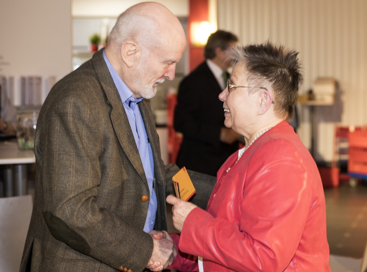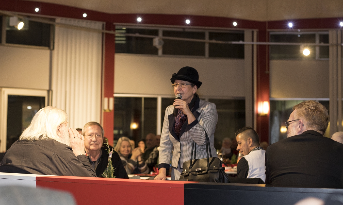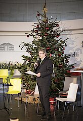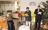 Schmunzelnd, lachend und mit viel Beifall verfolgten die Gäste die Beiträge der Lyrikerin Ulrike Göttlich und der Kabarettistin Monika Hintsches (als Trude Backes). Göttlich betrachtete humorvoll und besinnlich "das sich oftmals so wild drehende Geschehen um Weihnachten". Trude ("Wenn der Strom abgeschaltet wird, bin ich automatisch CO2-frei") ließ ihre ZuhörerInnen an ihrem (Ehe-)Leben teilhaben.