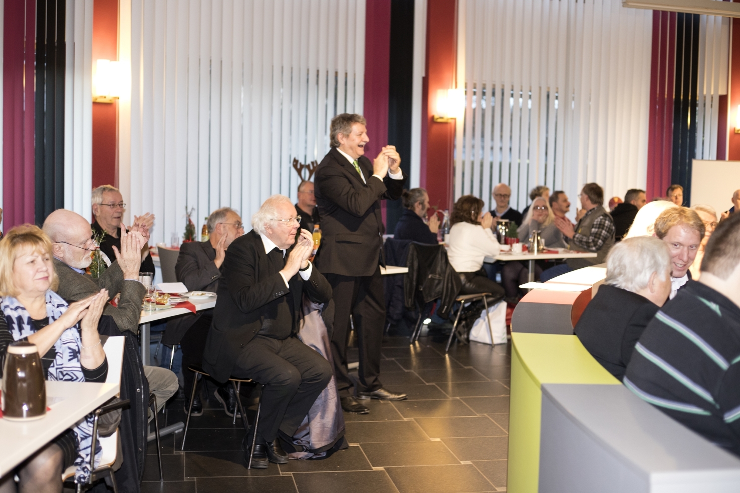 Für die Teilnahme an der gut dreistündigen Feier mussten sich die Gäste anmelden, ein Bus der NEW mobil und aktiv brachte sie hin und zum "ALZ-Haus" an der Lüpertzender Straße zurück. Wiederum hatten die städtischen Kliniken Rheydt ("Eli") ihr Bistro, die erwähnte Villa, zur Verfügung gestellt. "Und das möchten wir auch im kommenden Jahr tun, weil wir uns ihnen verpflichtet fühlen", versprach Geschäftsführer Thorsten Celary. Nicht zu vergessen das schmackhafte Menü mit Gänse- oder Hähnchen-Keule. Gespendet vom "Eli".