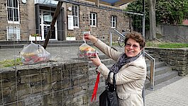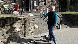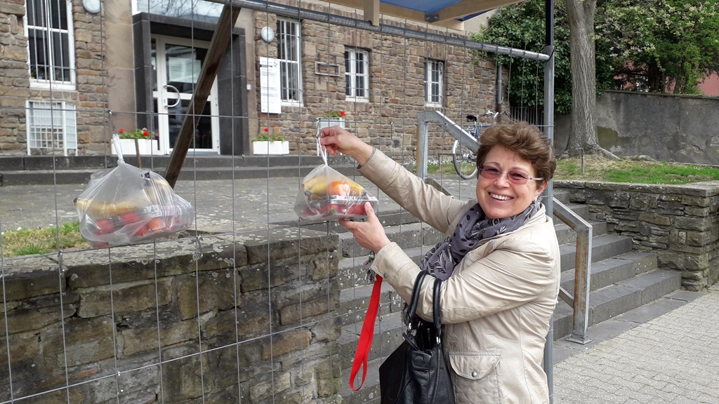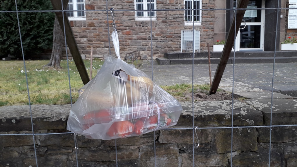 Unübersehbar vor allem dann, wenn gefüllt, ist der ALZ-Gabenzaun vorm Haus. Hier packt die kleine ALZ-Mannschaft täglich rund 50 Plastiktüten voll und hängt sie auf: Zum Beispiel mit je einer Packung Toastbrot, roter und grüner Paprika, Glas Marmelade und einer Tafel Schokolade. Eine Frau mit fünf Kindern in allen Körpergrößen nimmt sich eine. Sie sagt: "Danke, es ist so wunderbar, dass wir nicht vergessen sind." Auf solche Spenden sei sie angewiesen. Arbeiten könne sie derzeit nicht. "Erst dann, wenn Corona vorbei ist, könne sie wieder als Küchenhilfe tätig werden", sagt sie.